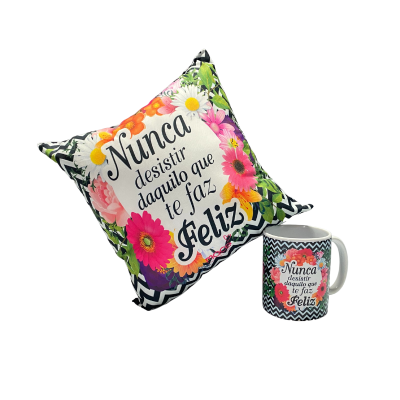 Conjunto Travesseiro e Caneca Nunca Desista