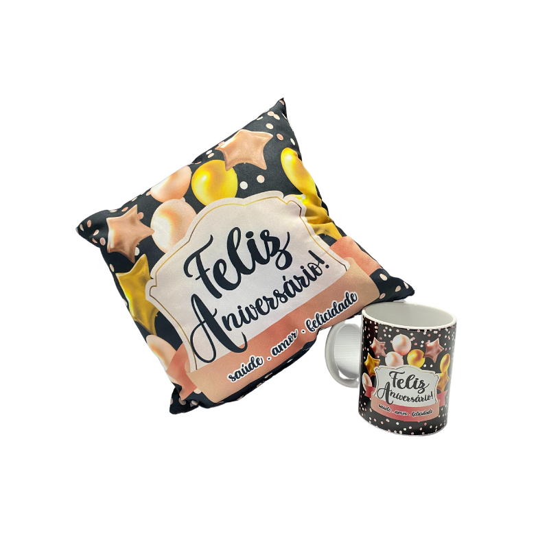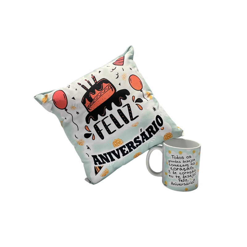 Conjunto Travesseiro e Caneca Feliz Aniversário