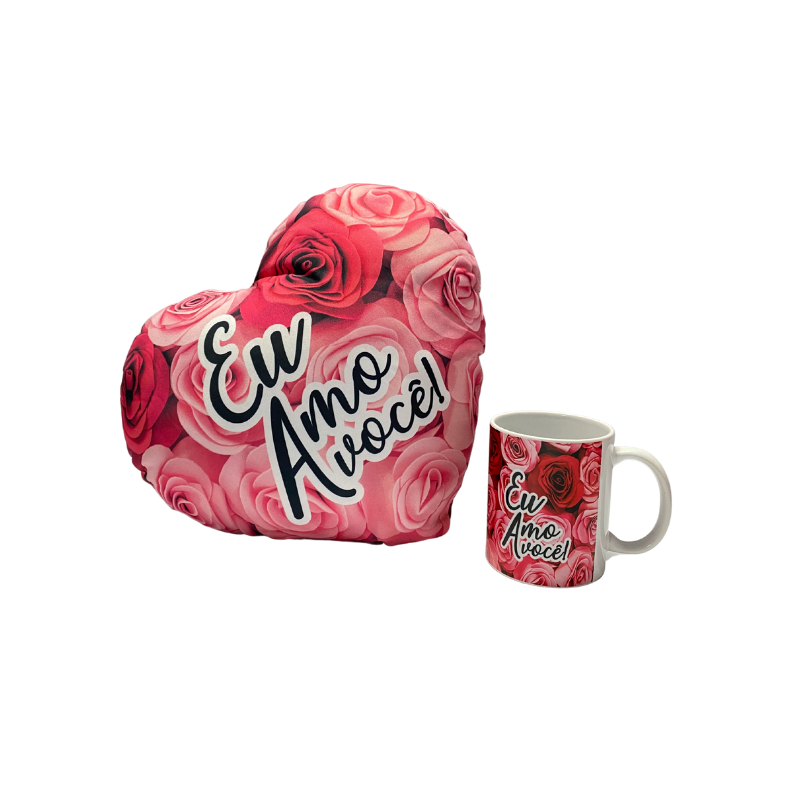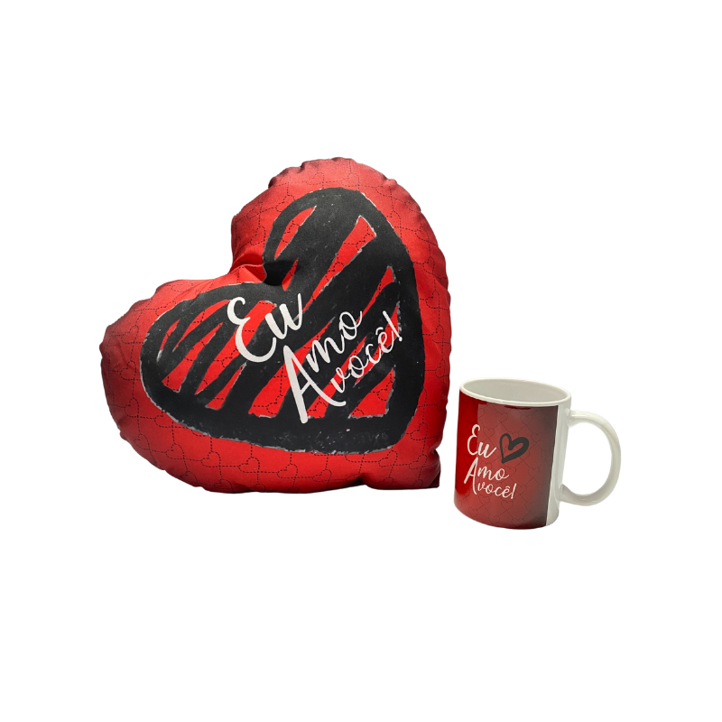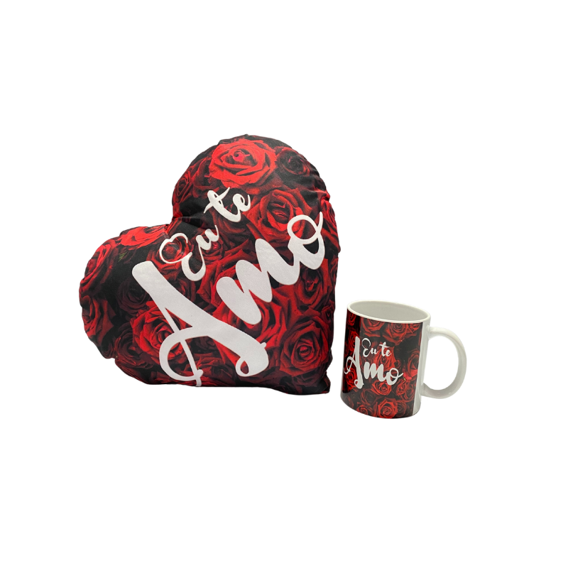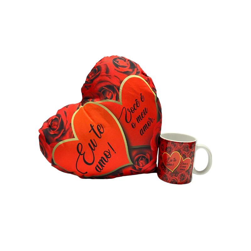 Conjunto Travesseiro Coração e Caneca Eu Amo Você